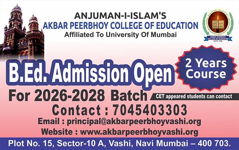 The Anjuman-I-Islam’s Akbar Peerbhoy College of Education, in keeping with its Motto, encourages students to regularly participate in inter-collegiate competitions. The students also work actively to sustain education in the neighborhood Community by nurturing the Sarva Sikhshan Abhiyan.