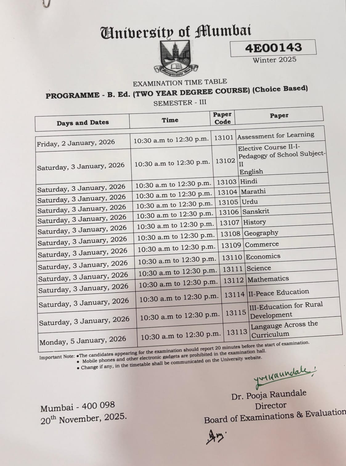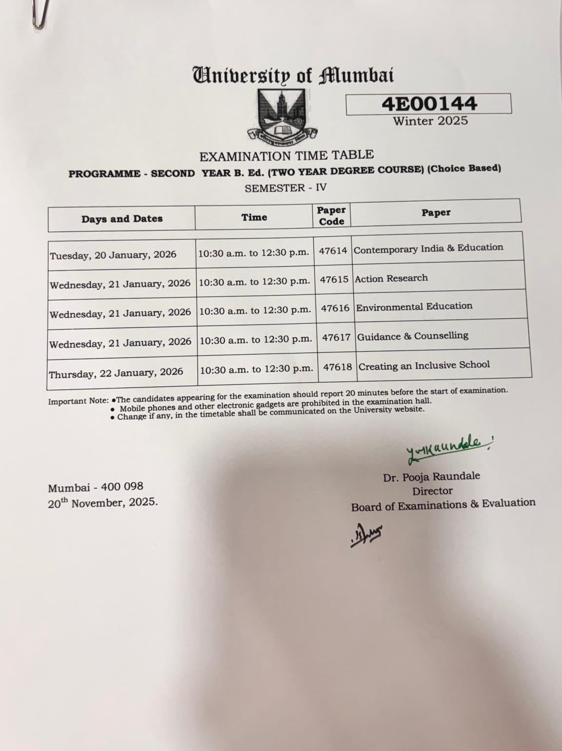 Seat numbers and places of examination will be announced on the college notice boards four days prior to the date of commencement of the examination.