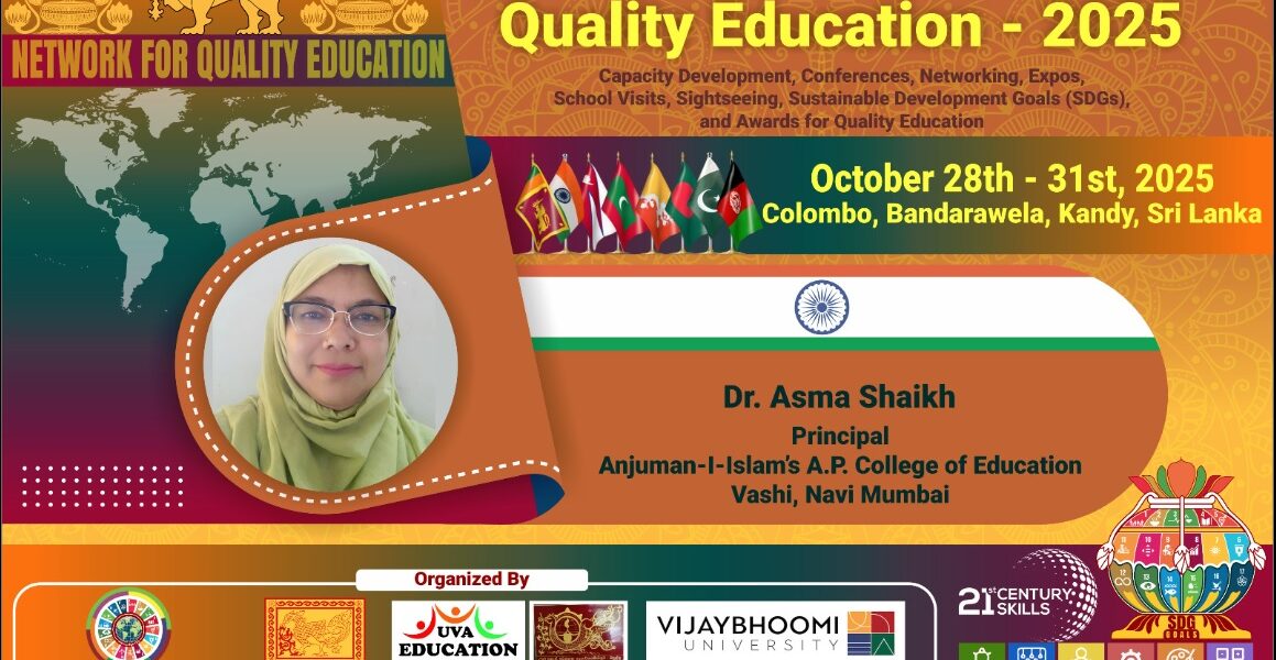 Anjuman-I-Islam achieved significant recognition by presenting at the highly selective International Conference on Quality Education in Sri Lanka-2025. We are exceptionally proud of our leaders, Mrs. Zulekha Siddiqui, Principal, Anjuman-I-Islam’s A.A.K. English High School, Vashi and Dr. Asma Shaikh, Principal, Anjuman-I-Islam’s Akbar Peerbhoy College of Education, Vashi, whose participation was a direct testament to the innovative spirit fostered across our institutions. They successfully shared our vision with global educational leaders: Dr. Asma Shaikh presented her paper on the cutting-edge MIT United States Inspired Action Research STEAM Project – Imagine, Design & Build, while Mrs. Zulekha Siddiqui showcased an insightful study titled Transformative Leadership, Paving Path for Quality Education. This opportunity to contribute our best practices brings great honour to the entire Anjuman-I-Islam family and powerfully validates that the commitment and tireless work of our educators is truly world-class. We extend our sincerest congratulations to Mrs. Siddiqui and Dr. Shaikh.